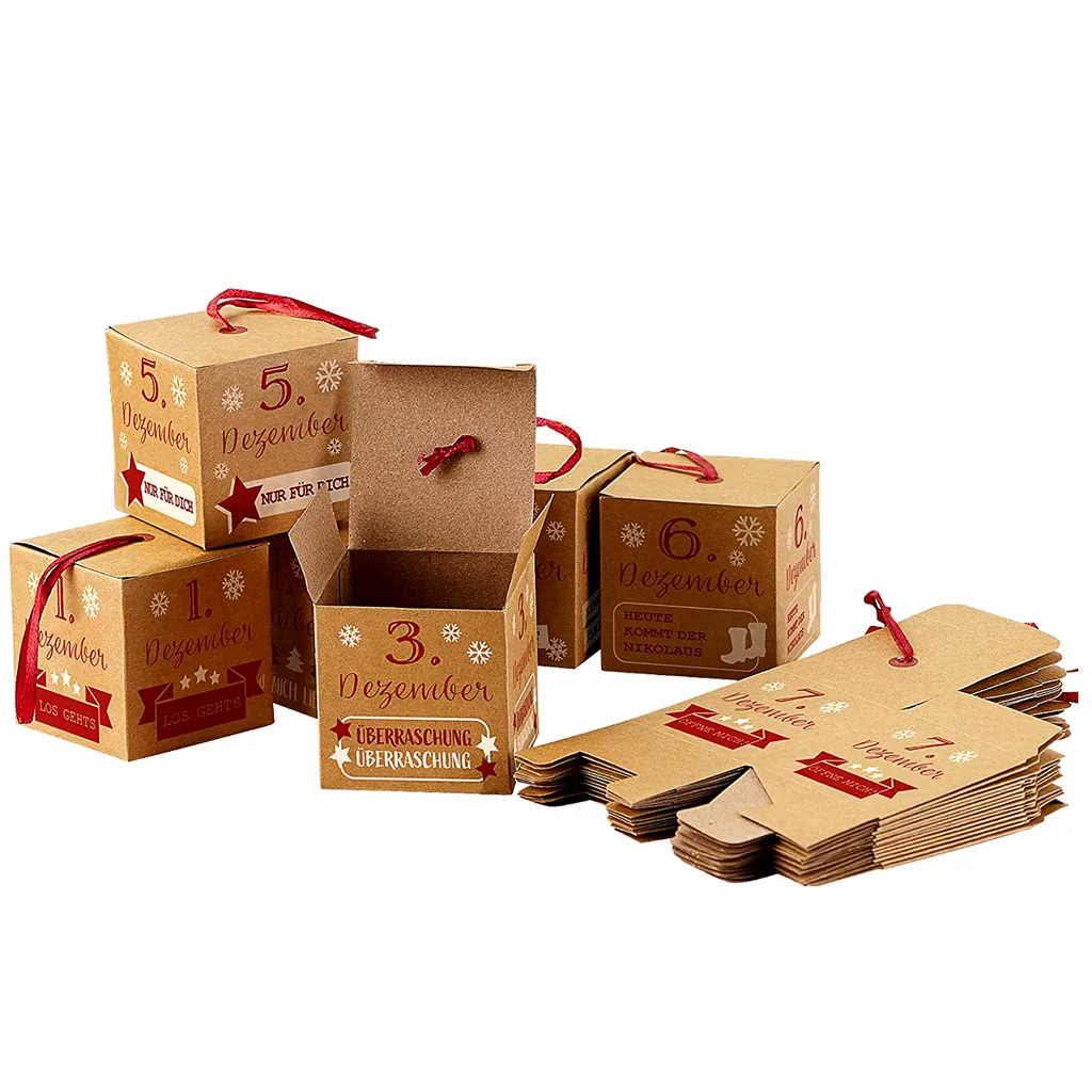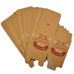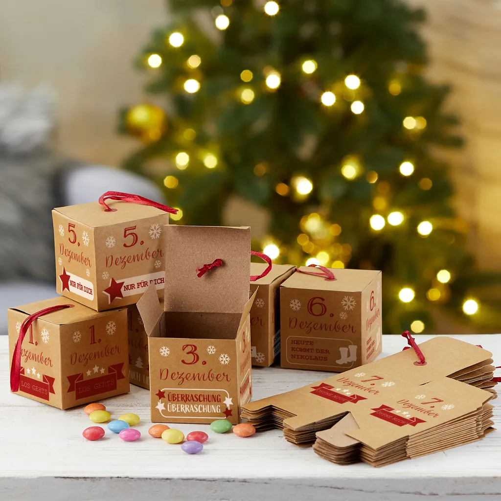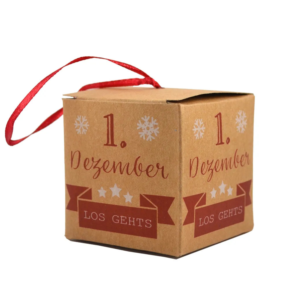 Was steigert die Vorfreude auf den 24.Dezember wohl mehr als ein liebevoll mit Kleinigkeiten befüllter Adventskalender? Ob Groß oder Klein – ein Adventskalender zaubert doch jedem ein Lächeln ins Gesicht und versüßt die Vorweihnachtszeit unheimlich. Öde langweilig schmeckende Schokolade gibt es hier nicht, sondern 24 Karton Boxen, welche alle mit roten Zahlen bedruckt sind und befüllt werden wollen.Die Boxen sind vorgestanzt und vorgefaltet. Somit lassen sie sich innerhalb von nur wenigen Sekunden aufstellen und beliebig stapeln. 24x Karton Boxen mit AufhängerGröße Boxen ca. 6×6 cm.