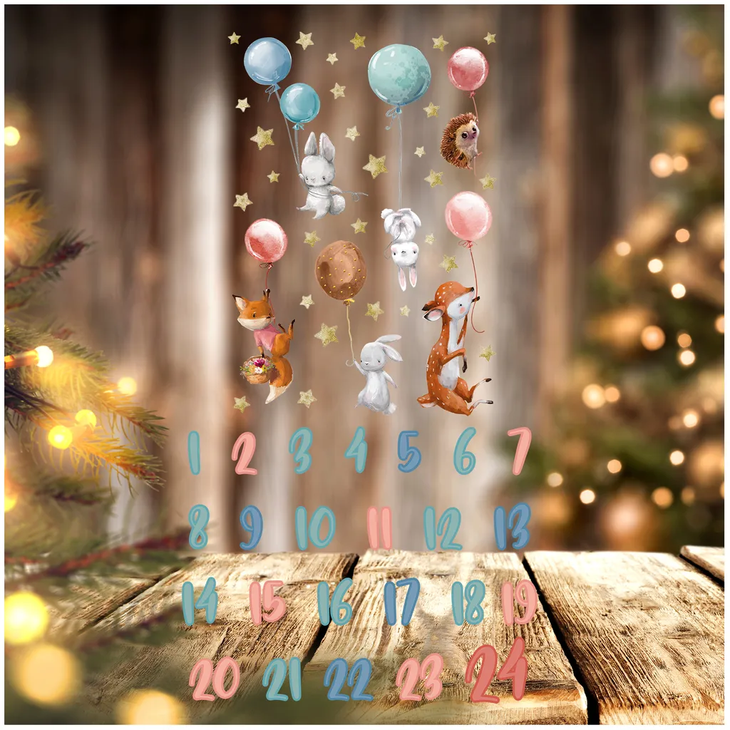 – Adventskalender Set mit Aufklebern, Papiertüten und Holzklammern