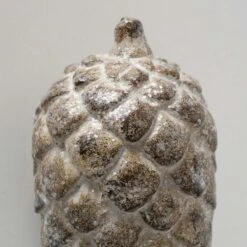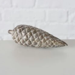 - Die niedlichen länglichen Tannenzapfen haben eine leicht geeiste Optik, sind in Braun gehalten und haben zwei unterschiedliche Größen