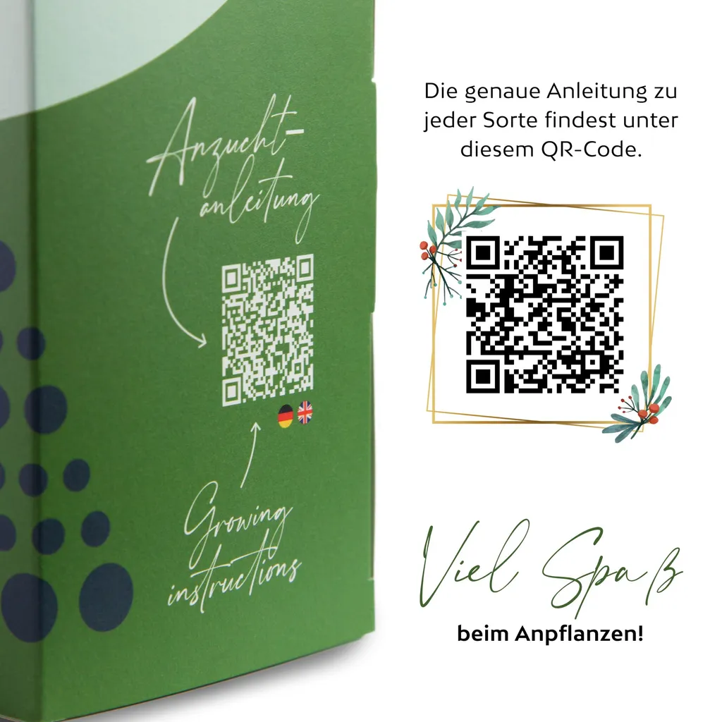 - ADVENTSKALENDER – Von A wie Aubergine bis Z wie Zucchini: hinter den Türen erwartet Sie eine bunte Mischung aus 24 verschiedenen Bio Gemüsesamen, die darauf warten, eingepflanzt zu werden.
