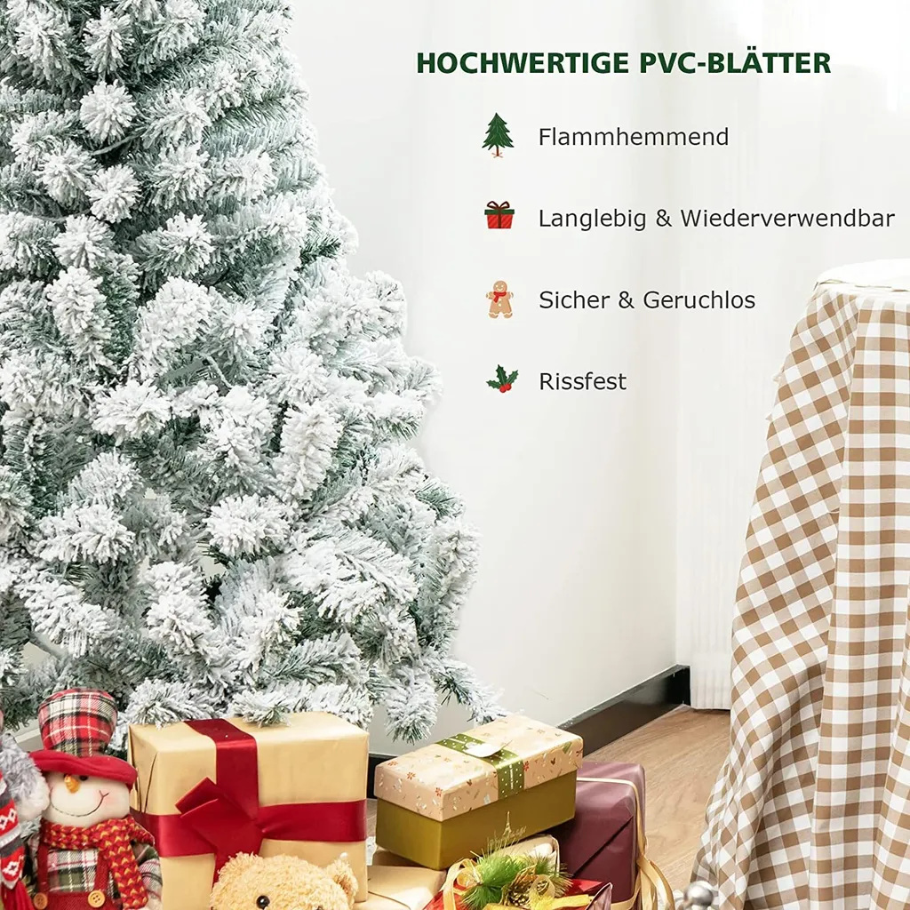 Dieser 135 cm hohe aufklappbare Weihnachtsbaum hat ein realistisches beflocktes Design, das Ihnen eine schöne Winterschneeszene bietet. 295 Spitzen lassen diesen Baum noch üppiger und attraktiver aussehen. Darüber hinaus verfügt der Weihnachtsbaum über 150 warmweiße LED-Lichter, die eine harmonische und sanfte Atmosphäre für Ihr Zuhause schaffen. Darüber hinaus nimmt der Weihnachtsbaum eine Scharnierstruktur an, die sich automatisch in die vorgesehene Position entfalten kann, wodurch Sie Zeit sparen, den Weihnachtsbaum in die gewünschte Form zu bringen.