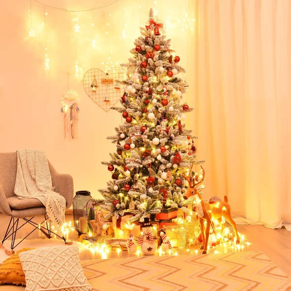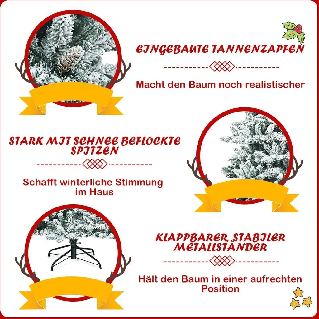 Der mit Kunstschnee bedeckte und sorgfältig verarbeitete Weihnachtsbaum besticht durch sein tolles Aussehen, wodurch Sie sich durch wie ineiner Winterlandschaft fühlen werden. Zahlreiche zwischen den Zweigen versteckte Tannenzapfen bringen mehr Lebendigkeit in den Baum, der genauso charmant wie ein echter ist.