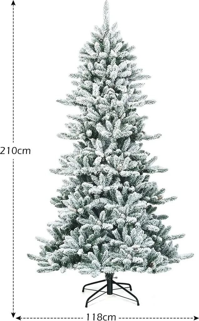 Der Weihnachtsbaum ist 210cm hoch, mit 1108 Zweigen, die eine gut proportionierte, volle Form liefern. Viele dicke Nadeln präsentieren die lebhafte Farbe, sehen realistisches aus und führen zu einem üppigen Aussehen. Sie lassen sich auch nicht leicht verformen, um sowohl einen feinen Stil als auch eine lange Lebensdauer zu erzielen.