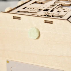 In der Adventskalenderbox befinden sich exquisite Dörfer, Schubladen mit eingravierten Zahlen und batteriebetriebene LED-Lichter, die die Szene beleuchten.