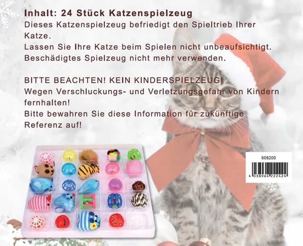 24 Türchen, hinter jeder verbirgt sich ein wunderschönes Spielzeug für Katzen