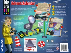 Großer Krimi-Spaß in der Adventszeit! Eigentlich sind Kim, Franzi und Marie zu Franzis Großtante auf die Ostsee-Insel gereist, um bei einer Müllsammel-Aktion zu helfen. Doch schon bei ihrer Ankunft bemerken sie, dass sie beobachtet werden. Als sich die merkwürdigen Vorfälle häufen und ein altes Schiffswrack am Strand auftaucht, wird den drei !!! schnell klar: sie stecken mitten drin in einem neuen Fall! Und den Mädchen bleiben nur 24 Tage, um das Rätsel zu lösen! Bei ihren Ermittlungen werden Die drei !!! von Kindern ab 8 Jahren unterstützt. Um das richtige Türchen im Adventskalender zu finden, wird täglich ein spannendes Rätsel gelöst und das dazugehörige Lösungsbild gefunden. Es zeigt das richtige Türchen, hinter dem sich jeden Tag ein tolles Gadget verbirgt. So schnell war Weihnachten noch nie da!