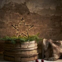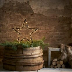 Dieser mit 60cm Durchmesser auffällige Metallstern ist mit 140 warmweiß leuchtenden LED bestückt. Er eignet sich perfekt zum Einsatz im Vorgarten, in Blumentöpfen, Balkonkästen oder im Blumenbeet.