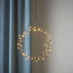 Wunderschöner Kranz aus feinem, schwarzen Draht, der mit 200 warmweißen LED bestückt ist. Der Kranz eignet sich sowohl als Fensterschmuck, Türschmuck oder für die Wand. Du kannst ihn ebenso als dekorativen Tischkranz (zum Beispiel um eine schöne Glasschale herum) einsetzen.