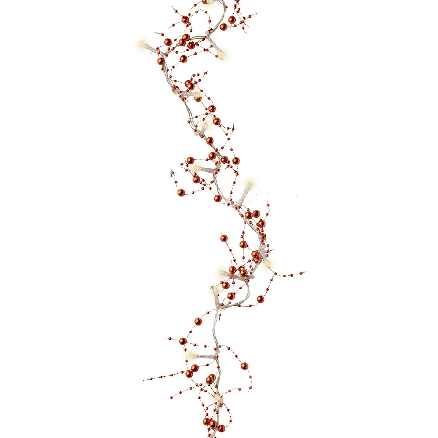 LED Lichterkette mit großen und kleinen Perlen – 20 warmweiße LED – L: 0,95m – Batterie – rot