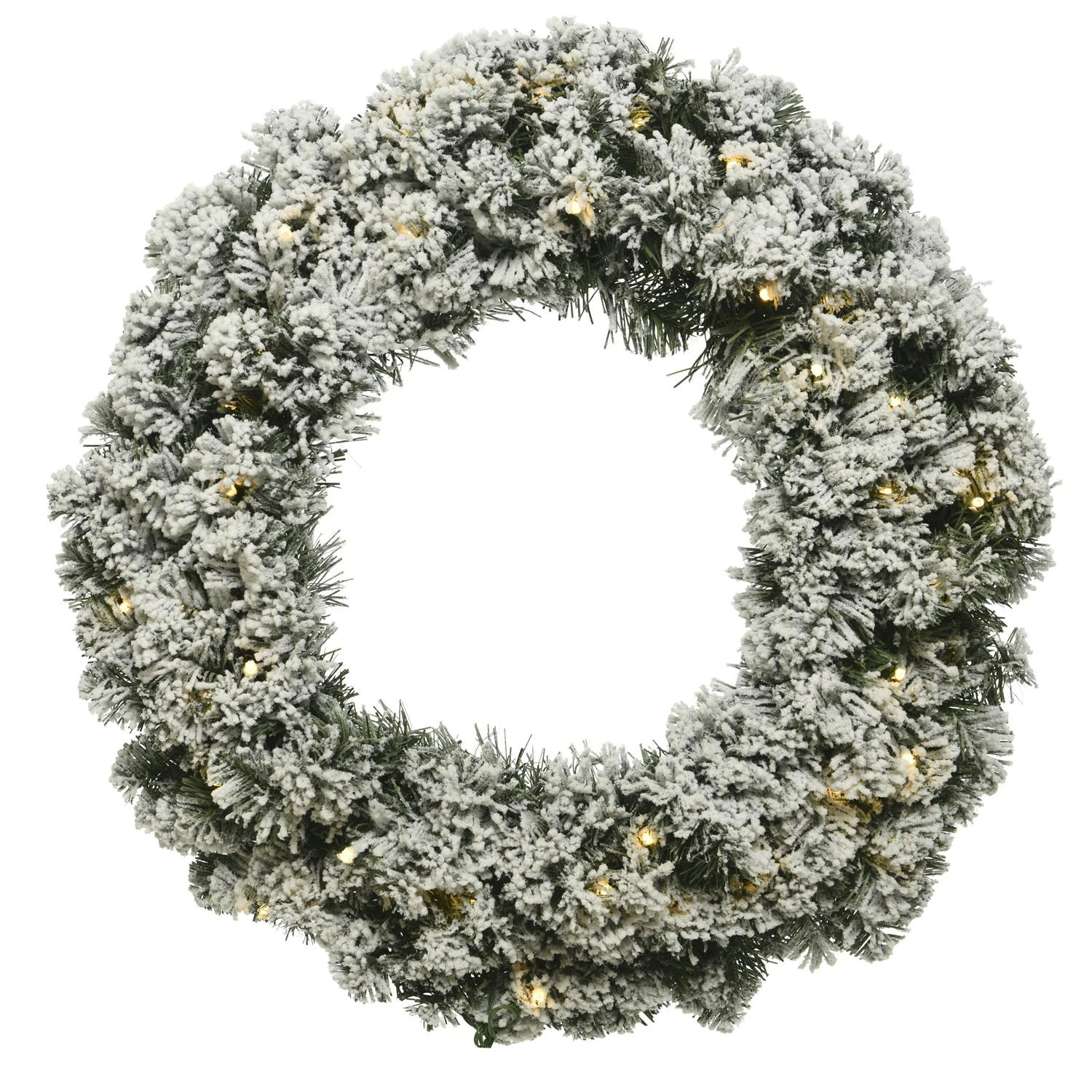 LED Tannenkranz – Schneeoptik – 40 warmweiße LED – D: 50cm – 8 Funktionen – Batterie – grün, weiß