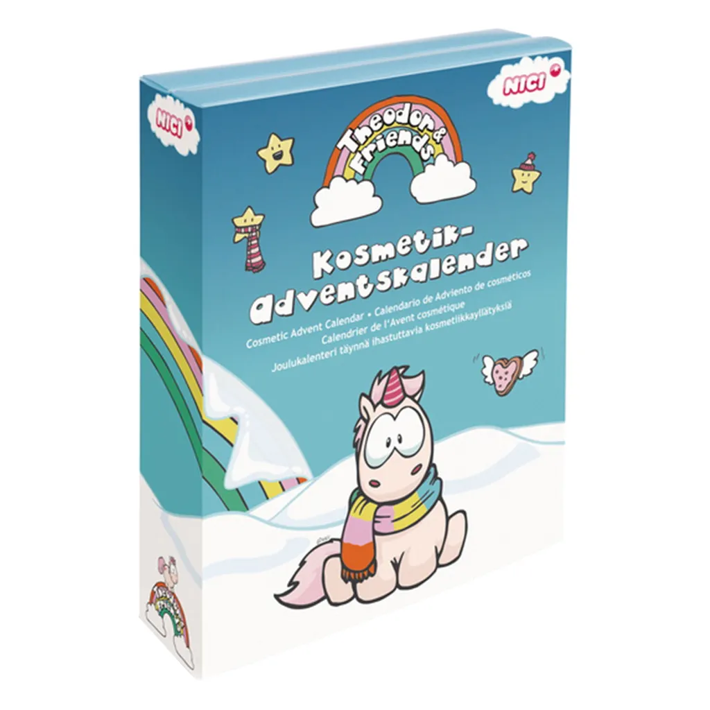Die Welt von Theodor and Friends ist bunt und macht gute Laune. Lass dir von Einhorn Theodor und seinem Einhorn-Adventskalender die Zeit bis Weihnachten versüßen! Hinter den 24 Türchen hat er hochwertige Kosmetikartikel für dich versteckt: Lippenstift, Nagellack, Lidschatten und vieles mehr. Kreiere deinen persönlichen Weihnachts-Look!