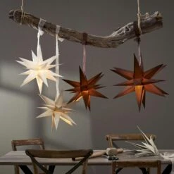 Hinweis: Dieser Stern wirkt sowohl mit als auch ohne Beleuchtung. Er wird standardmäßig ohne Kabel, Fassung und Leuchtmittel ausgeliefert und lässt sich ganz individuell mit einer Hängefassung oder einer Batterielichterkette bestücken. Du findest diverse Vorschläge unter Zubehör.