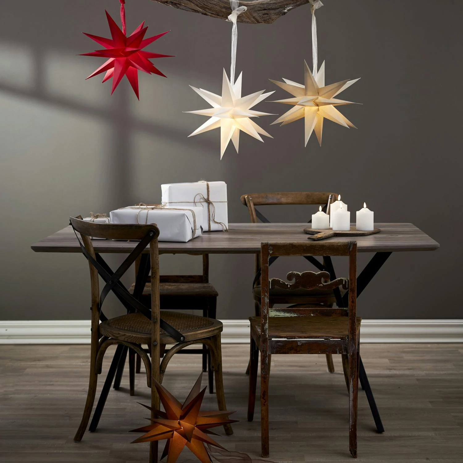 Mit 35cm Duchmesser ist der 3D-Stern bestens für Fenster, Regale oder frei hängend im Raum geeignet.