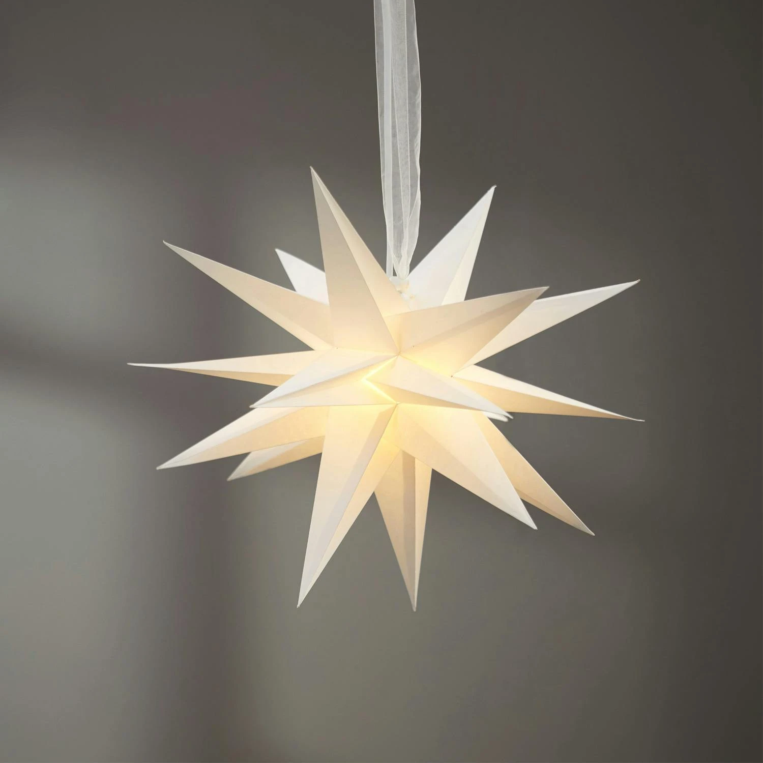 Papierstern DECEMBER – 3D Stern mit Dekoband – hängend – 18-zackig – D: 35cm – weiß