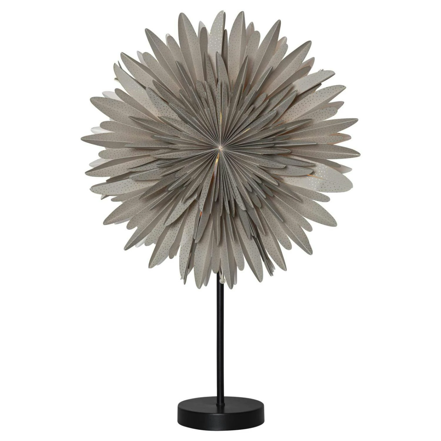 Der ganz in weiß gehaltene 43cm Stern mit dem schwarzen Fuß sieht sowohl bei Tag als auch beleuchtet bei Dunkelheit richtig schön aus. Der stehende Papierstern ist ideal als Dekoration von Fensterbänken, Tischen, Beistelltischen und Kommoden.