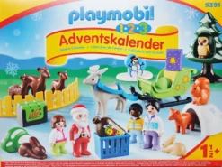 Hinter den 24 Türchen des PLAYMOBIL -Adventskalenders Waldweihnacht warten auch dieses Jahr wieder tolle Überraschungen: Da kommt der Weihnachtsmann auf seinem Rentierschlitten angeflogen! Die Familie und die Waldtiere sind schon sehr aufgeregt. Natürlich bekommen auch die Tiere zu Weihnachten etwas besonders leckeres zu essen. Was wird wohl in dem großen Geschenkesack sein? Mit dem PLAYMOBIL -1.2.3 Adventskalender wird auch schon den Kleinsten das Warten auf Weihnachten verkürzt.