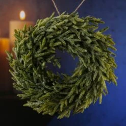 Dieser wunderschöne grüne Tannenkranz in Frost-Optik zaubert eine weihnachtliche Stimmung in Dein Zuhause. Weil der Kranz mit einem Durchmesser von 30cm an der Unterseite abgeflacht ist, kannst Du diesen vielseitig einsetzen.