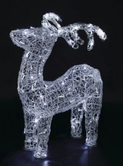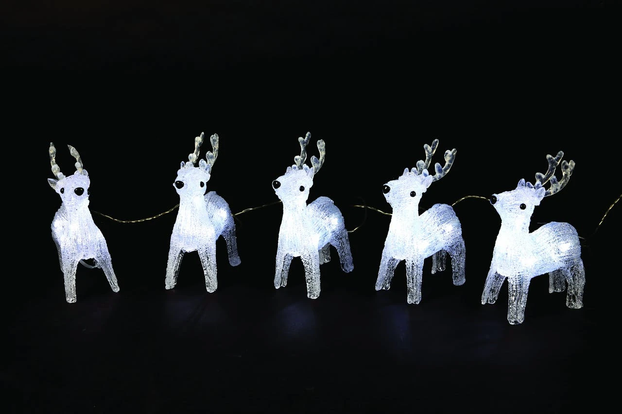 Das Set von 5 realistischen Acrylrentiere von Tarrington House besteht aus 30 kühlweißen LED-Lichtern (0.36 W), ist Bateriebetrieben, verfügt über eine Zeitschaltuhr und ist für den Innen- und Außenbereich geeignet. Die Figuren messen 12 x 6 x 20 cm (B x T x H).