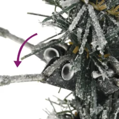 - Beschneit: Der Weihnachtsbaum ist mit künstlichem, weißem Schnee geschmückt, um ein einzigartiges winterliches Ambiente zu schaffen.