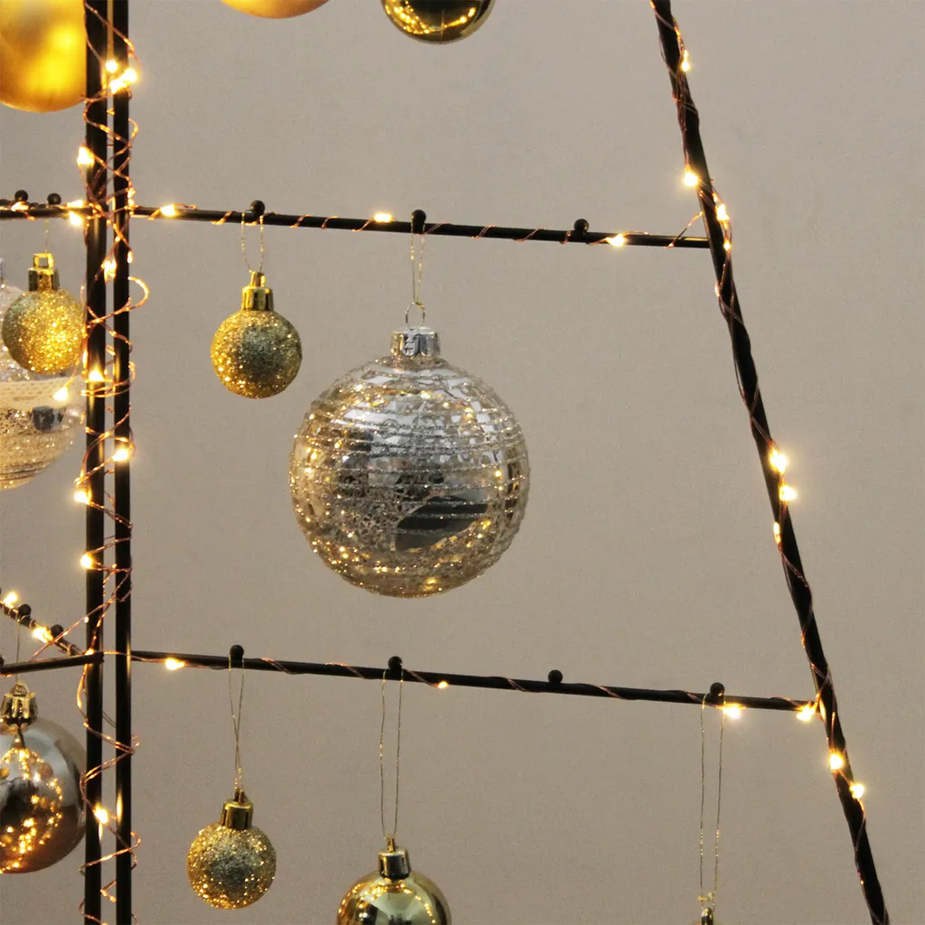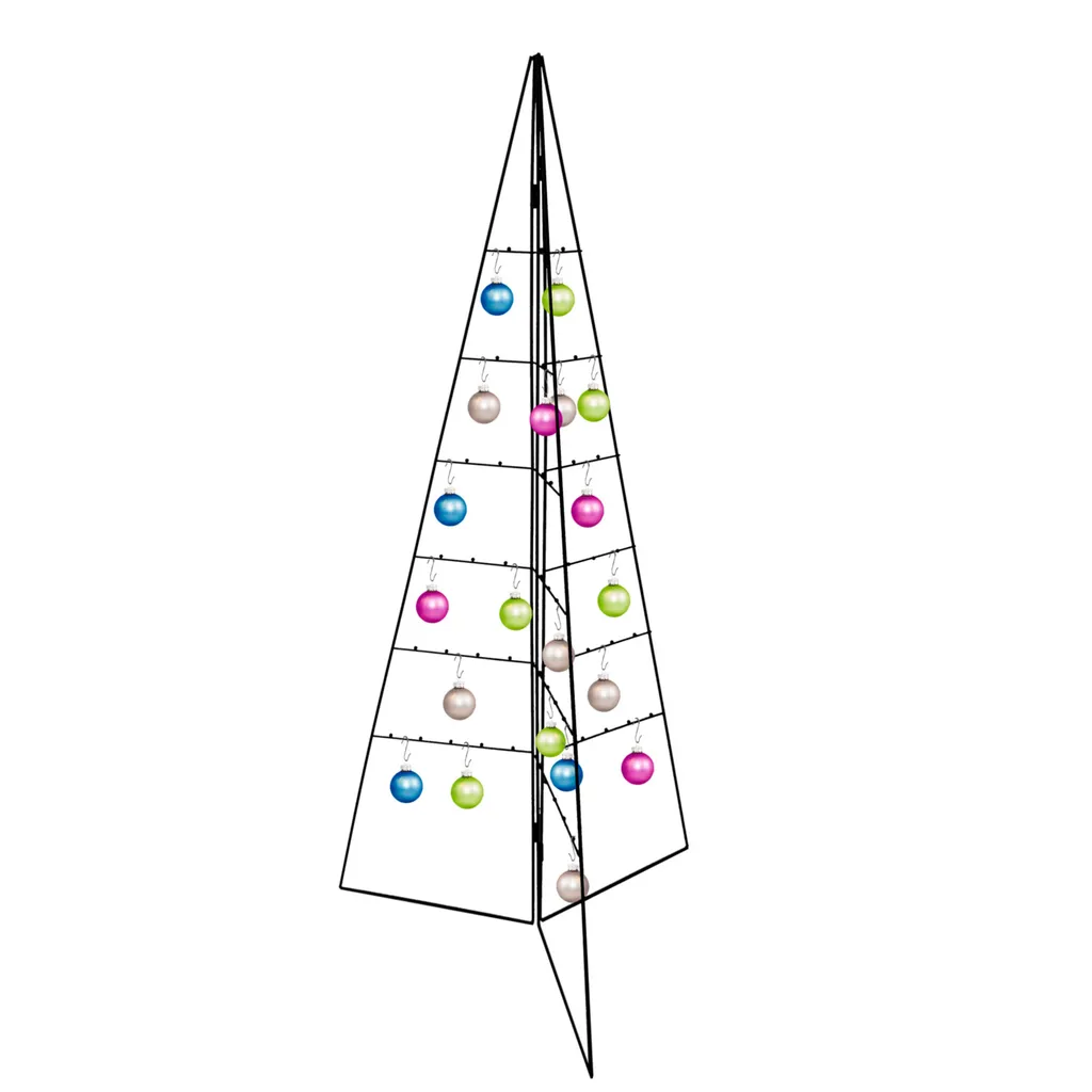 Dieser schöne Aufsteller, in Form einer Tanne, ist die perfekte Winter- und Weihnachtsdekoration. Hier kannst Du Deiner Kreativität freien Lauf lassen. Der Dekobaum ist 130cm hoch und komplett aus Metall verarbeitet. Es befinden sich am Baum insgesamt 48 Haken, um individuelle Dekoration zu platzieren. Nach Nutzung lässt sich das Gestell einfach zusammenklappen und platzsparend lagern.