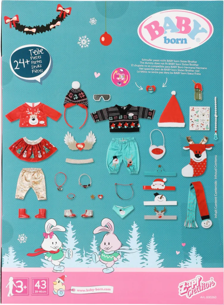 BABY born Adventskalender aus 24 Ăśberraschungen, bestehend aus KleidungsstĂĽcken und Accessoires fĂĽr BABY born.